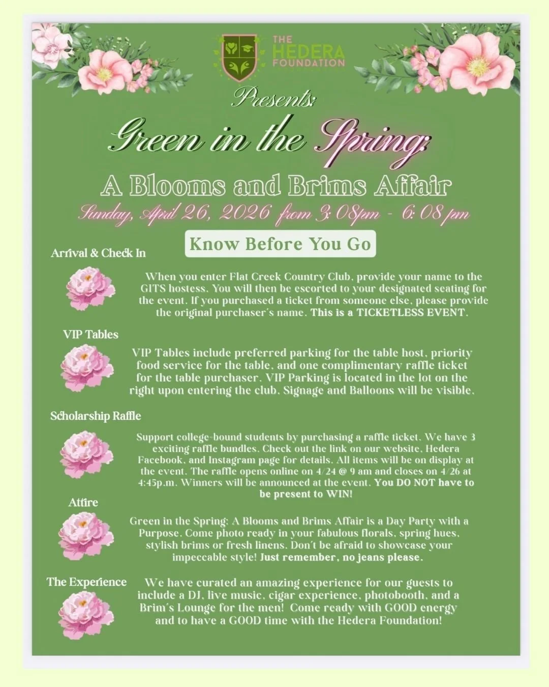 Green In The Spring: A Blooms and Brims Affair 🌸🎩 brings our community together to support The Hedera Foundation’s work uplifting, educating, and inspiring neighbors across Coweta and Fayette counties.